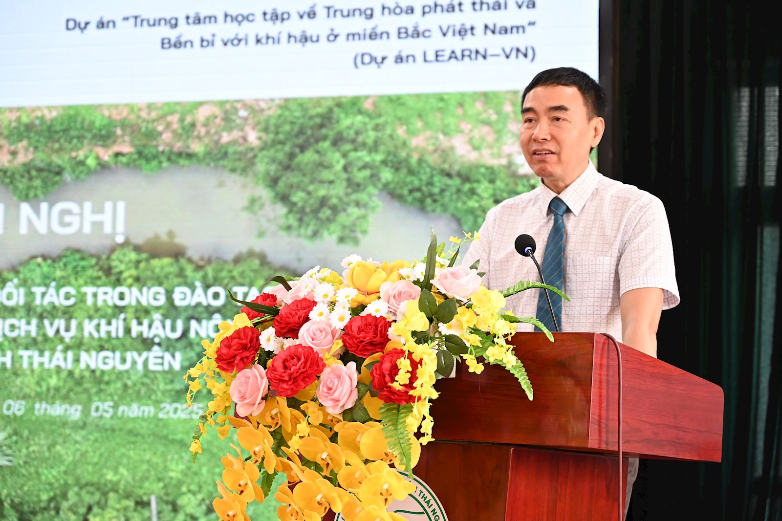 Vừa qua, ban lãnh đạo và các chuyên gia của dự án LEARN-VN đã thực hiện chuỗi các hoạt động nhằm thúc đẩy, xây dựng mạng lưới đối tác chiến lược tại tỉnh Thái Nguyên và triển khai hiệu quả các chương trình nâng cao năng lực cho địa phương. Đoàn công tác do GS. TS. Nguyễn Thế Hùng - Chủ tịch Hội đồng Trường Đại học Nông lâm (Đại học Thái Nguyên) dẫn đầu và GS. TS. Trần Thị Thu Hà, Viện trưởng Viện Lâm nghiệp và Phát triển bền vững điều phối trực tiếp. GS. TS. Nguyễn Thế Hùng - Chủ tịch Hội đồng Trường Đại học Nông Lâm (Đại học Thái Nguyên) Làm việc với các đối tác, GS. TS. Trần Thị Thu Hà đã trình bày, giới thiệu tổng quan về dự án “Trung tâm học tập về Trung hòa phát thải và Bền bỉ với khí hậu ở miền Bắc Việt Nam (LEARN-VN)”. Trung tâm học tập này được thiết kế để nâng cao kiến thức và xây dựng năng lực cho cộng đồng địa phương, sinh viên và thanh niên nhằm góp phần thực hiện các mục tiêu trong chiến lược quốc gia về biến đổi khí hậu giai đoạn đến năm 2050 của Chính phủ Việt Nam. GS. TS. Trần Thị Thu Hà giới thiệu về dự án LEARN-VN Tại Sở Giáo dục và Đào tạo Ngày 8/4, tại trụ sở Sở Giáo dục và Đào tạo tỉnh Thái Nguyên, đã diễn ra buổi làm việc giữa Ban lãnh đạo Sở và đoàn công tác nhằm trao đổi về việc phối hợp triển khai dự án LEARN-VN. Phát biểu tại buổi làm việc, GS.TS. Nguyễn Thế Hùng nhấn mạnh tầm quan trọng của sự phối hợp chặt chẽ với các cơ quan địa phương, đặc biệt là các đơn vị quản lý giáo dục từ cấp tiểu học đến trung học phổ thông, trong việc triển khai các hoạt động nâng cao năng lực ứng phó với biến đổi khí hậu cho học sinh và giáo viên. Đồng tình với ý kiến trên, GS.TS. Trần Thị Thu Hà bày tỏ mong muốn được chia sẻ nguồn học liệu về biến đổi khí hậu tới các cơ sở đào tạo trong tỉnh. Bà cũng cho biết, các hợp phần đào tạo cũng như Công viên Khí hậu sẽ đóng vai trò là không gian trải nghiệm và thực hành cho học sinh toàn tỉnh. Về phía địa phương, ông Đào Xuân Tân, Phó Giám đốc Sở, khẳng định sự đồng thuận và cam kết sẵn sàng phối hợp, ủng hộ các hoạt động của dự án LEARN-VN trong thời gian tới. Buổi làm việc kết thúc với sự thống nhất giữa hai bên về phương thức phối hợp, đặc biệt là việc tổ chức nhanh chóng các lớp tập huấn, chương trình tham quan trải nghiệm cho giáo viên và học sinh, nhằm nâng cao nhận thức cộng đồng về biến đổi khí hậu. Đoàn công tác làm việc tại Sở Giáo dục và Đào tạo tỉnh Thái Nguyên Tại Sở Dân tộc và Tôn giáo Ngày 9/4, tại trụ sở Sở Dân tộc và Tôn giáo tỉnh Thái Nguyên, đã diễn ra buổi làm việc giữa lãnh đạo Sở và đoàn công tác của dự án LEARN-VN. Tại đây, GS.TS. Nguyễn Thế Hùng nhấn mạnh vai trò thiết yếu của việc phối hợp với địa phương, đặc biệt là các cơ quan đóng vai trò cầu nối với cộng đồng dân tộc thiểu số. Ông đề xuất thúc đẩy các hoạt động nâng cao năng lực trong khuôn khổ dự án, nhằm hỗ trợ cộng đồng thích ứng hiệu quả với biến đổi khí hậu. GS.TS. Trần Thị Thu Hà cũng chia sẻ những kinh nghiệm và định hướng chiến lược về quản lý liên ngành, đặc biệt là việc lồng ghép yếu tố biến đổi khí hậu vào các chính sách phát triển bền vững cho vùng dân tộc thiểu số. Hai bên thống nhất triển khai chuỗi hoạt động bao gồm tập huấn, hội thảo, tham quan học tập và truyền thông cộng đồng, với mục tiêu nâng cao nhận thức và năng lực cho cán bộ cơ sở và người dân, đặc biệt là đồng bào dân tộc thiểu số. Nội dung thảo luận cũng tập trung vào các thực hành canh tác thích ứng với khí hậu, quản lý tài nguyên bền vững, đảm bảo sinh kế ổn định và thúc đẩy lối sống xanh, bảo vệ môi trường và sức khỏe cộng đồng. Đồng chí Phan Thanh Hà, Giám đốc Sở Dân tộc và Tôn giáo bày tỏ mong muốn hợp tác lâu dài và nhấn mạnh tầm quan trọng của việc nâng cao nhận thức, năng lực cho đội ngũ cán bộ làm công tác dân tộc, qua đó góp phần thúc đẩy sự phát triển toàn diện và hài hòa của địa phương. Đoàn công tác làm việc tại Sở Dân tộc và Tôn giáo tỉnh Thái Nguyên Tại Sở Nông nghiệp và Môi trường Ngày 10/4, đoàn công tác tiếp tục có buổi làm việc hiệu quả với lãnh đạo Sở Nông nghiệp và Môi trường tỉnh Thái Nguyên. Hai bên đã tập trung thảo luận về các nội dung trọng tâm: nâng cao nhận thức cộng đồng về biến đổi khí hậu và tác động của nó thông qua các chương trình đào tạo, tập huấn, tham quan thực tế; thúc đẩy các mô hình thực hành và canh tác thích ứng với biến đổi khí hậu nhằm đảm bảo sinh kế bền vững cho người dân; đồng thời xây dựng hệ thống ACIS – mạng lưới thực hiện dịch vụ khí hậu nông nghiệp tại địa phương. Ông Dương Sơn Hà, Phó Giám đốc Sở Nông nghiệp và Môi trường hoàn toàn đồng thuận với 
